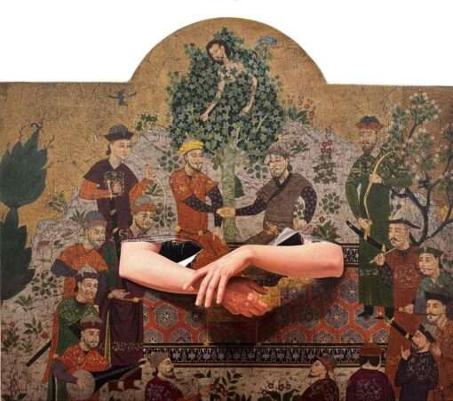 Sadr Arhami’s paintings belong to the category of neo-surrealist art. Sadr Arhami’s works are obviously indebted to the legacy of artists such as Salvador Dali and René Magritte; Although in some of his paintings, he tries to create a link between the traditions of Iranian art and modern painting methods by adding formal elements of painting. This point also puts him in the category of neo-traditionalist painters. This contemporary painter was born in the city of Isfahan. Sadr Arhami was in charge of Mehrfam group of painters for some time and was a member of Image art group. In 2009, a documentary film was made about the life and works of this artist. In 2013, his works were also displayed in a group exhibition titled “Neoclassicism” in Tehran Museum of Contemporary Arts. The first appearance of Sadr Arhami’s works in auctions took place in June 2010 in the third period of Tehran auction. His works have appeared in domestic and international auctions a total of 5 times until 2021, and 100% of his works have been sold. The most expensive work of this artist in the auctions until 2021 was hammered at the price of 37,500 dollars at Christie’s auction house (contemporary and modern Turkish, Iranian and Arab art) on March 27, 2013. And it is interesting to know that Sadr Arhami was the youngest artist participating in the 18th Christie’s auction and his work was sold for three times the minimum estimate.